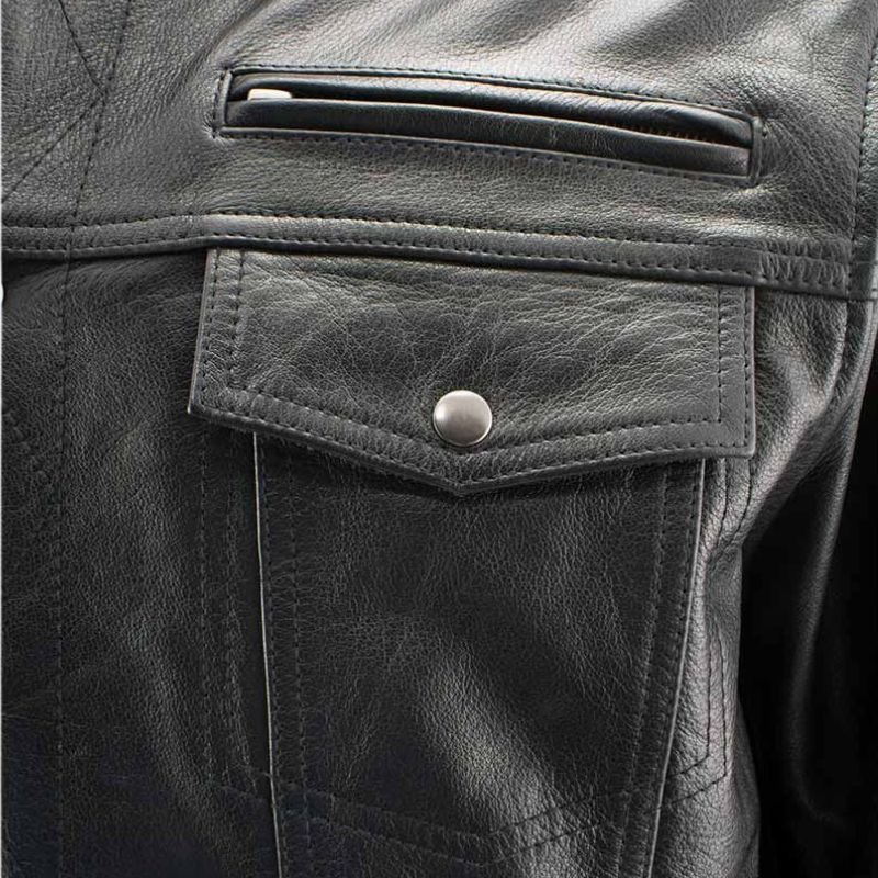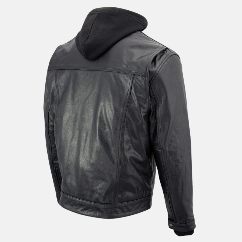 The Black Mens Hooded Leather Jacket pairs effortlessly with jeans, trousers, or casual outfits. You can wear it for casual outings, evening meet-ups, or travel. Its structured yet comfortable design ensures you look polished while staying relaxed. The combination of classic leather style and modern hooded functionality makes it a standout piece in any wardrobe.