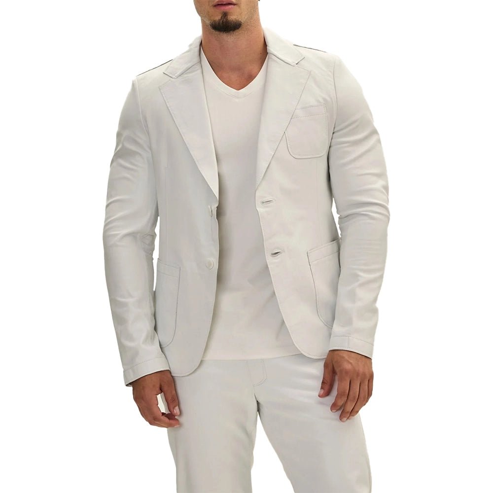 The White Two Button Leather Blazer is a refined statement piece designed for men who value elegance and modern style. This blazer combines classic tailoring with premium materials, making it a standout choice in high-quality leather fashion. Crafted by skilled artisans, it uses genuine lambskin leather that is soft, lightweight, and flexible. At the same time, the leather is durable and resistant to everyday wear.